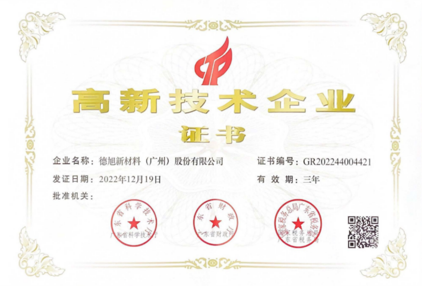 德旭新材料(廣州)股份有限公司成立于2012年,坐落于國內新材料領域創新集聚區的廣州高新技術產業開發區核心位置——廣州科學城,是一家集研發、生產、銷售于一體且擁有自主知識產權的專精特新企業。長期專注于金屬材料的防腐蝕研究與創新,為汽車與船舶、航空航天、半導體及3C電子、新能源、水性防腐涂料等領域的金屬防腐蝕提供產品和解決方案。同時也服務于工業潤滑、金屬表面處理、工業、商用和民用重油污清洗和益智玩具等行業。公司產品獲得BASF(巴斯夫)、HP(惠普)、漢高、美泰、MOOSE、中國船舶、中國機械總院、安集、匯川、三環、晨光等國內外知名企業的青睞。